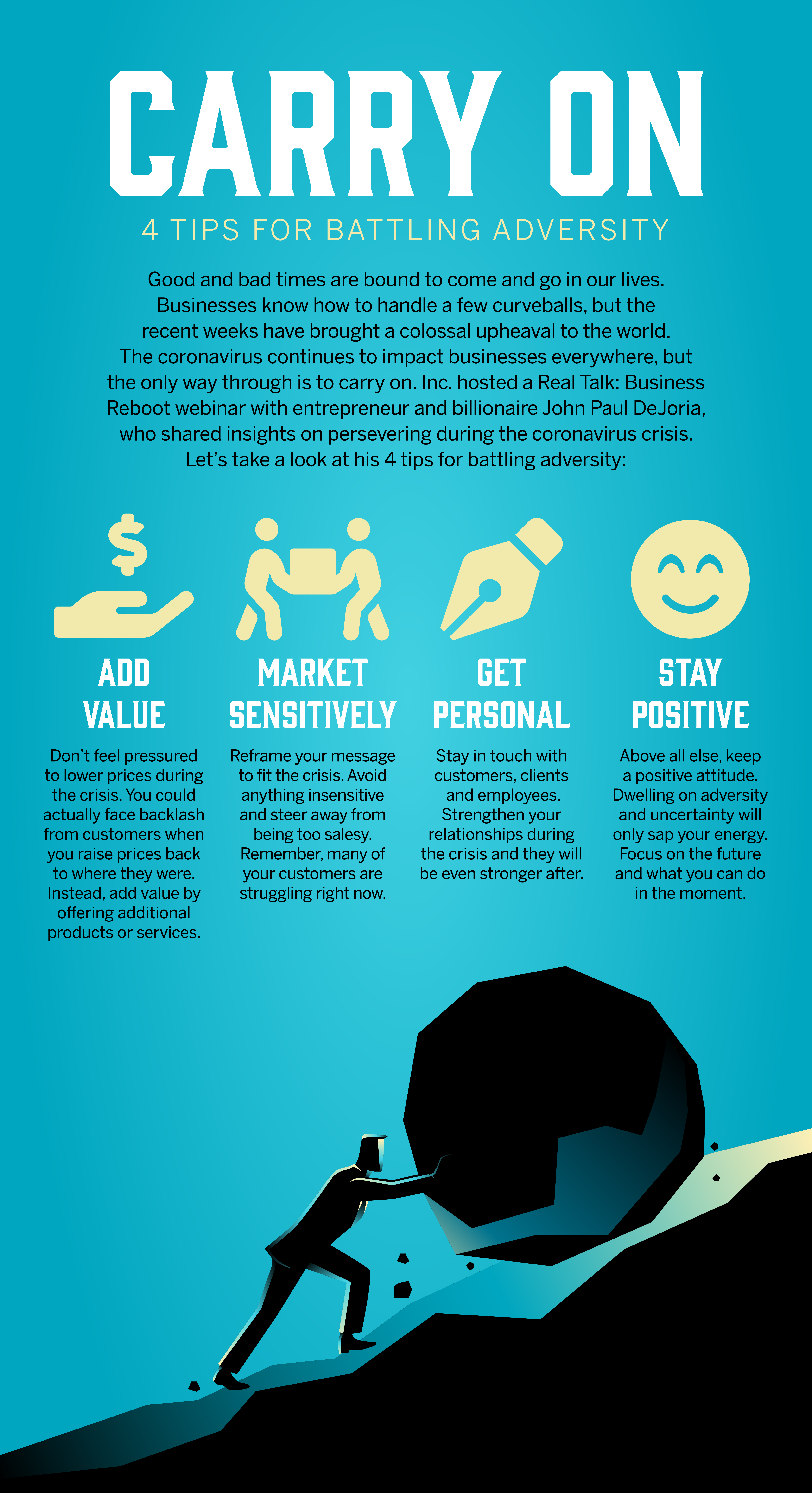 Good and bad times are bound to come and go in our lives. Businesses know how to handle a few curveballs, but the recent weeks have brought a colossal upheaval to the world. The coronavirus continues to impact businesses everywhere, but the only way through is to carry on. Inc. hosted a Real Talk: Business Reboot webinar with entrepreneur and billionaire John Paul DeJoria, who shared insights on persevering during the coronavirus crisis. Let’s take a look at his 4 tips for battling adversity: